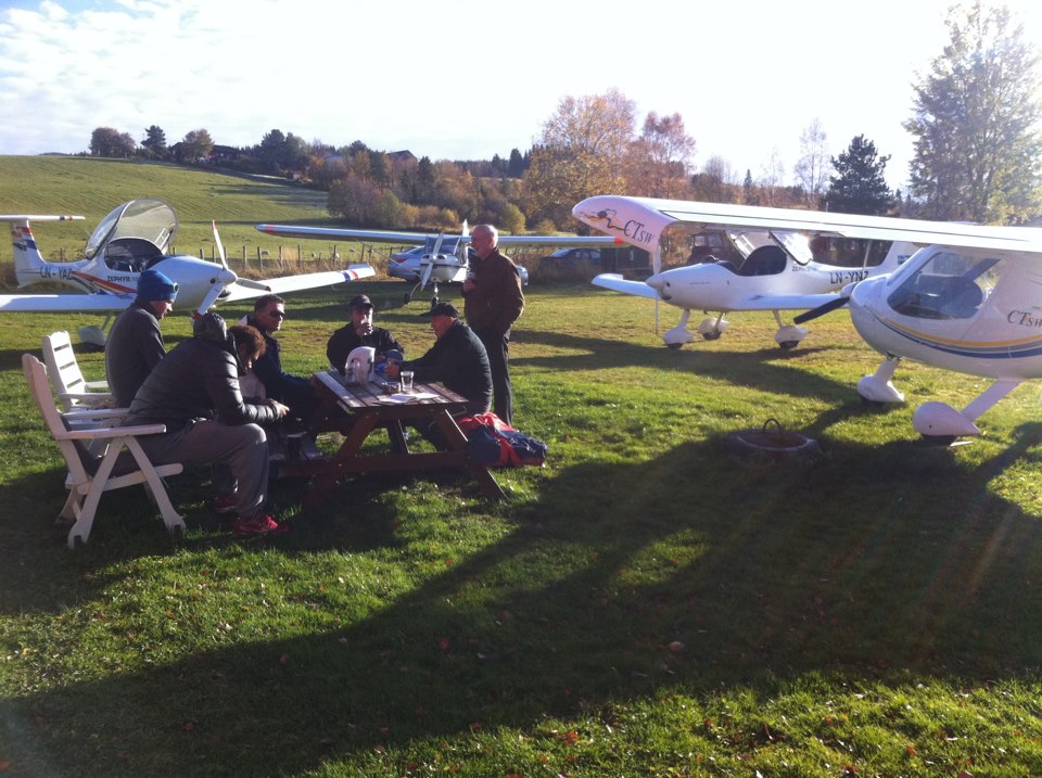 Det var flyging både på lørdag og søndag denne helga også. Både fly og gyro har vært i lufta. Skoling pågår for fullt enda. Tid til kaffedrikking og skrøner ble det som vanlig! Det har også vært besøk av fly fra både Henning og Snåsa.