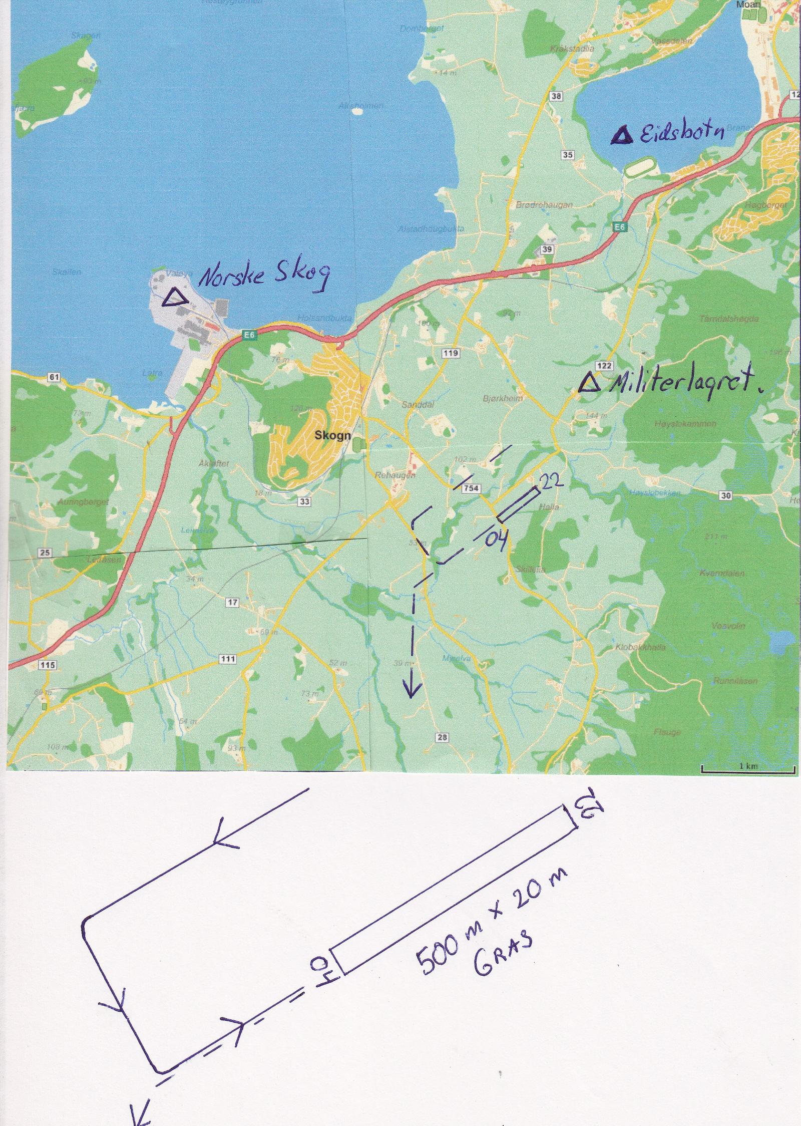Innflygingsmønster Skogn Flyplass 500 x 20 meter.