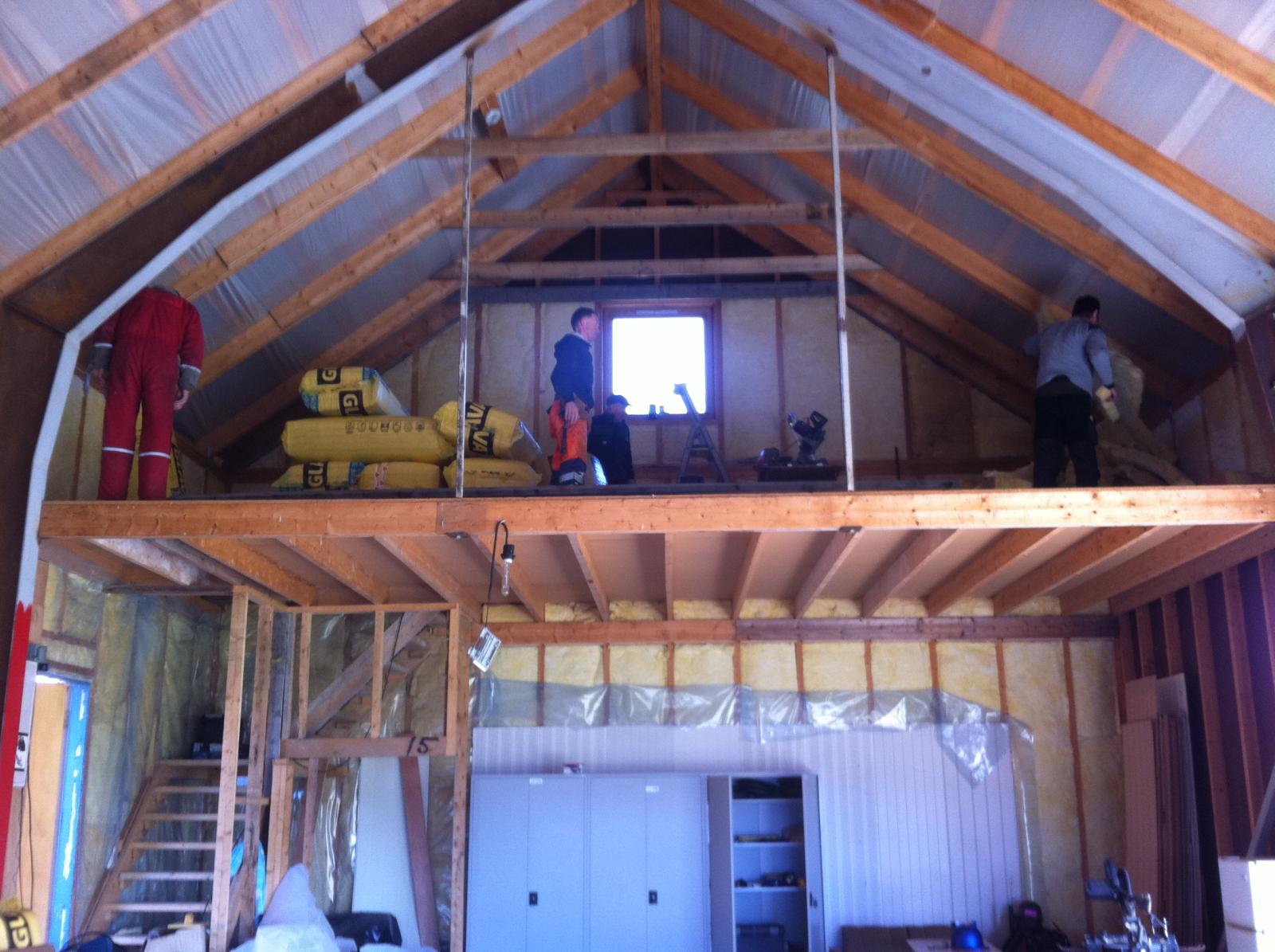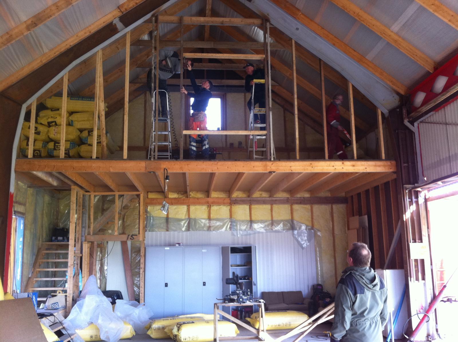 Det var en ivrig gjeng som jobbet med klubbrommet denne dagen.