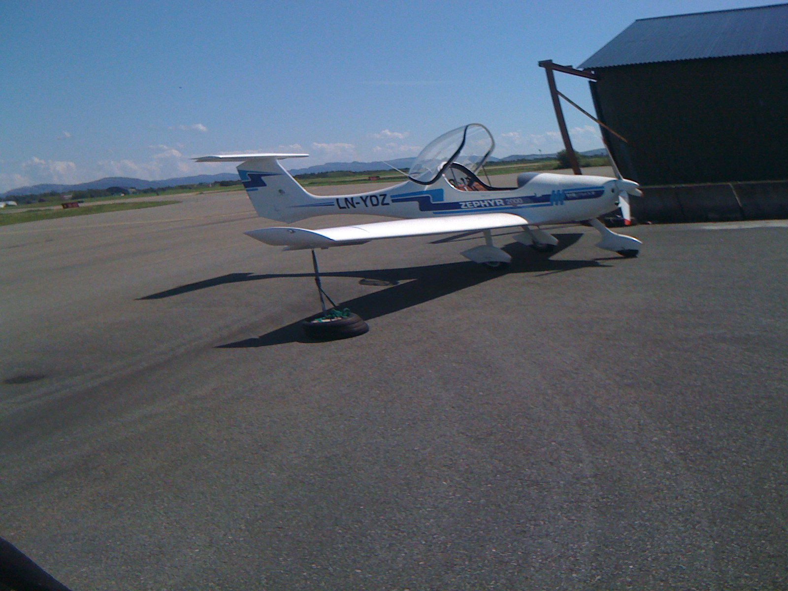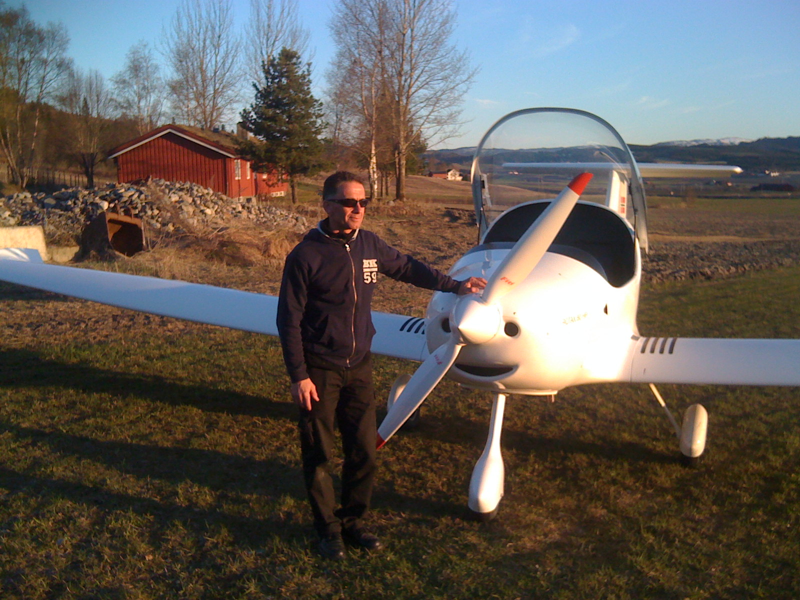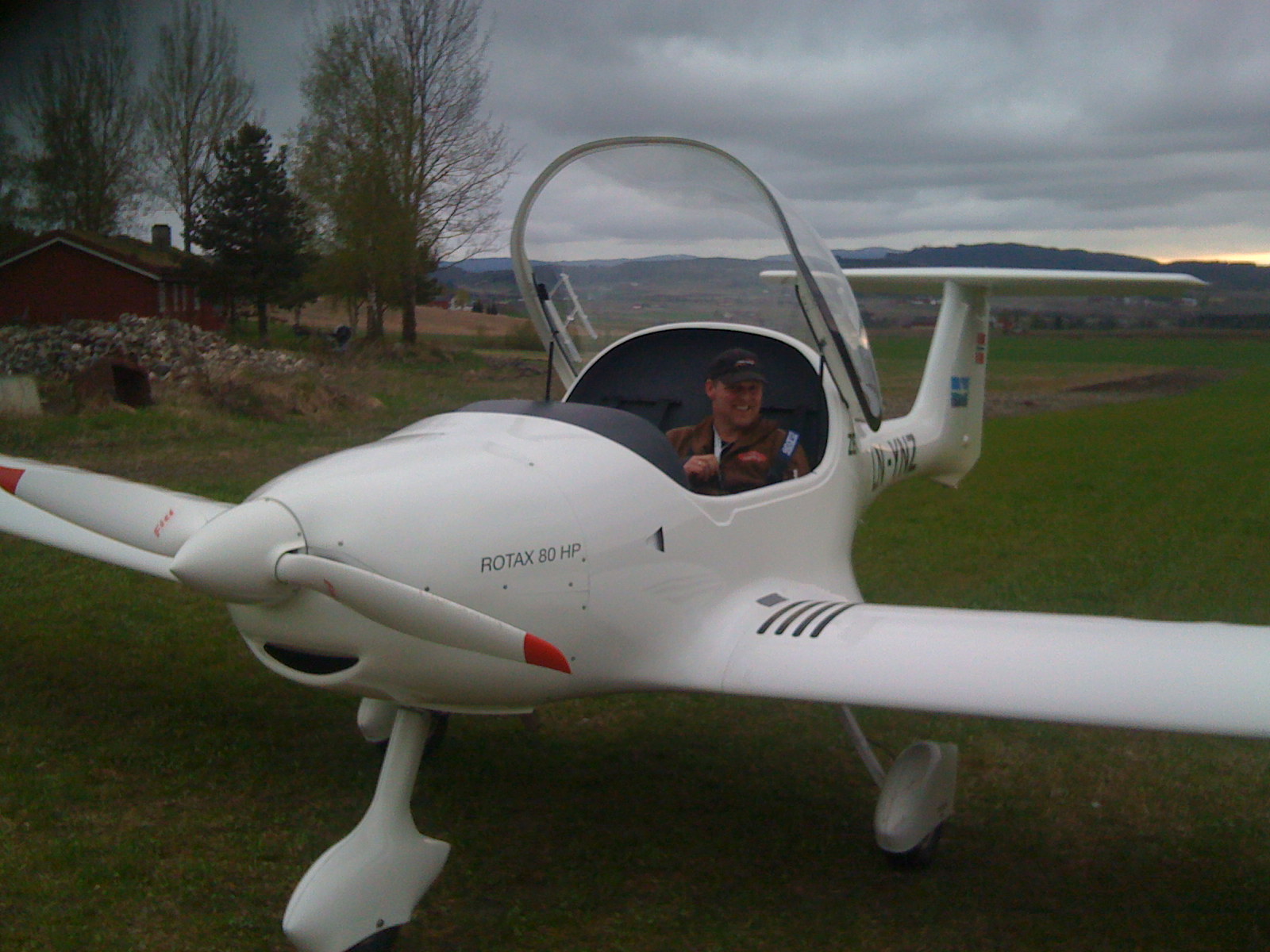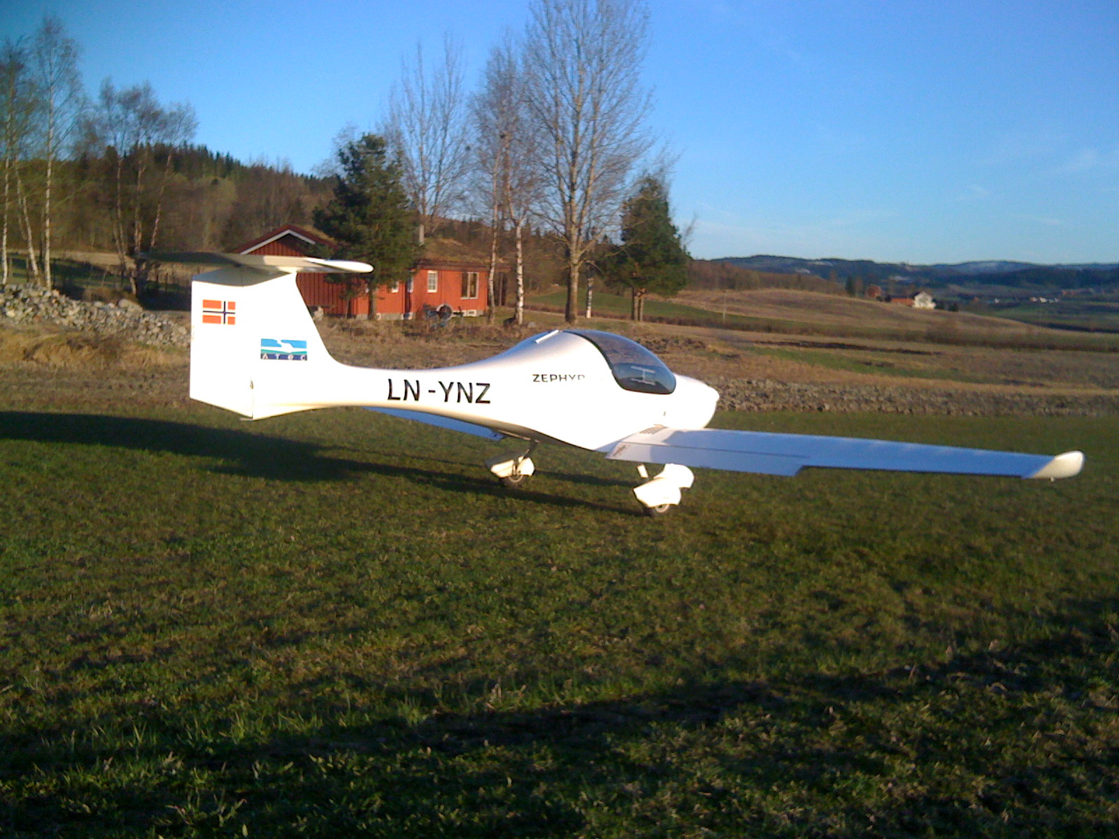 Alf Jonny har landet hjemme på åkeren for en rask matbit. Trenger ikke asfaltbane til Zephyren nei;)