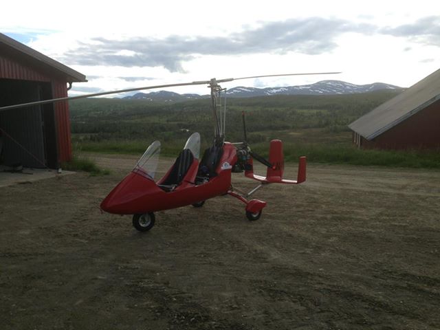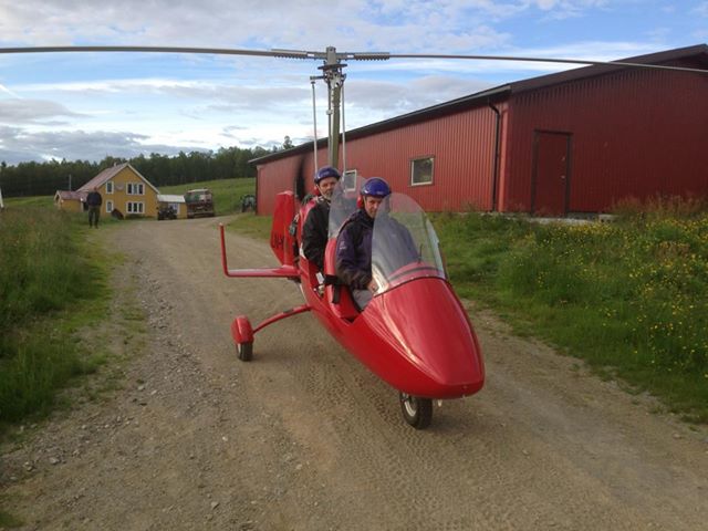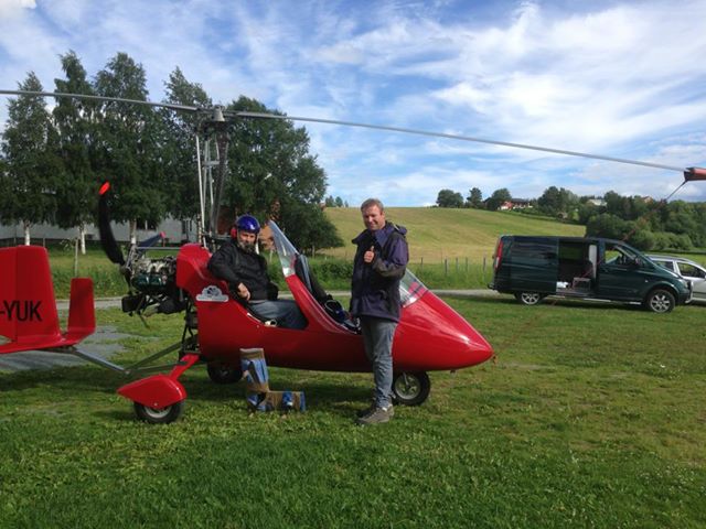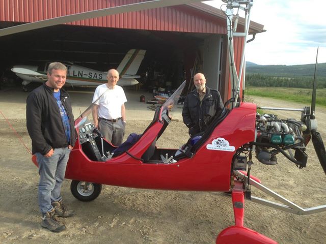 Alf Jonny og Tore tok turen til Gaundal fjellgård med gyrokopteret.