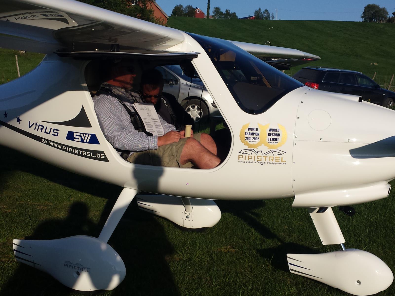 Per Arne Skjørholm i gang med besiktning av fly