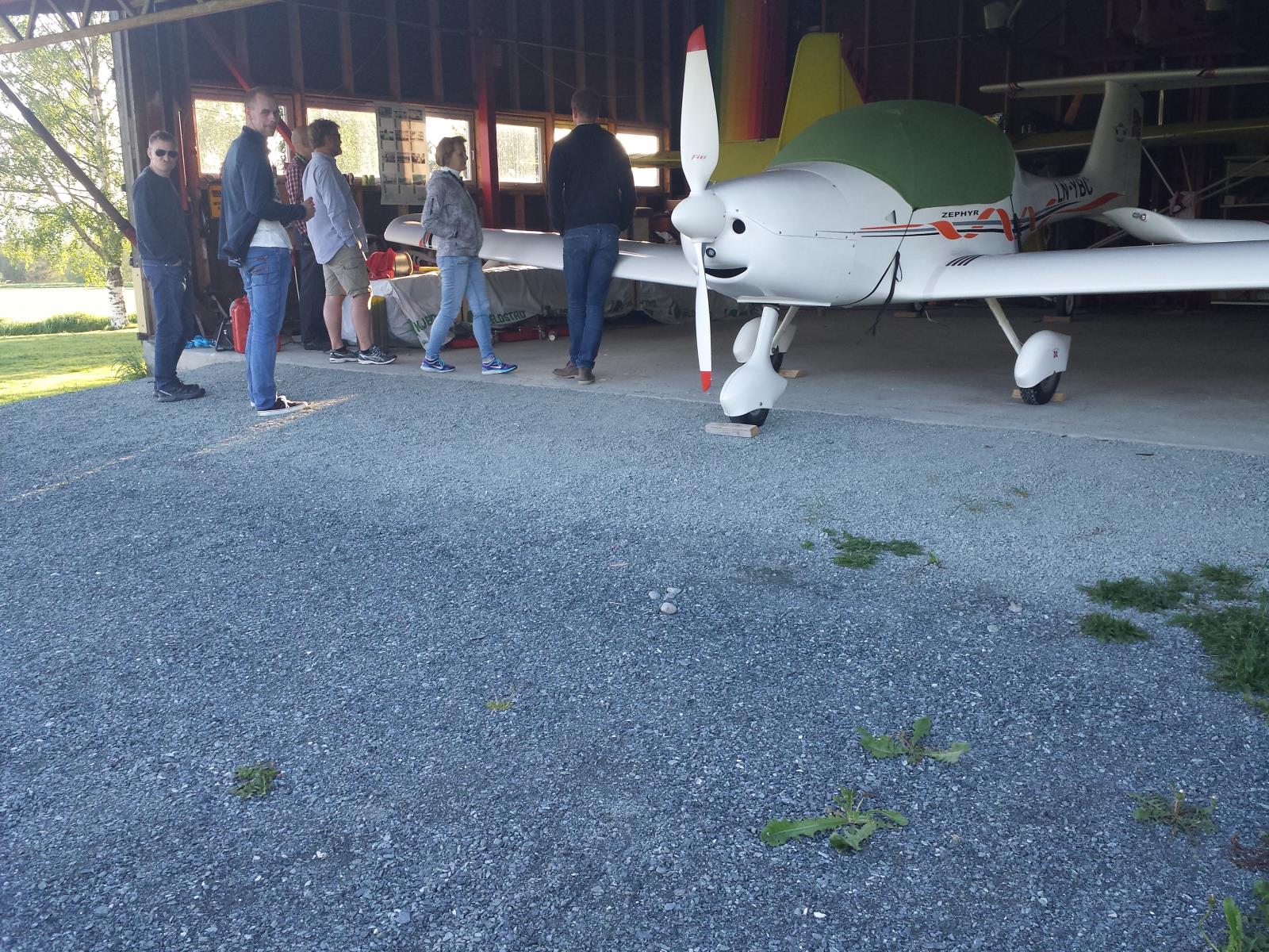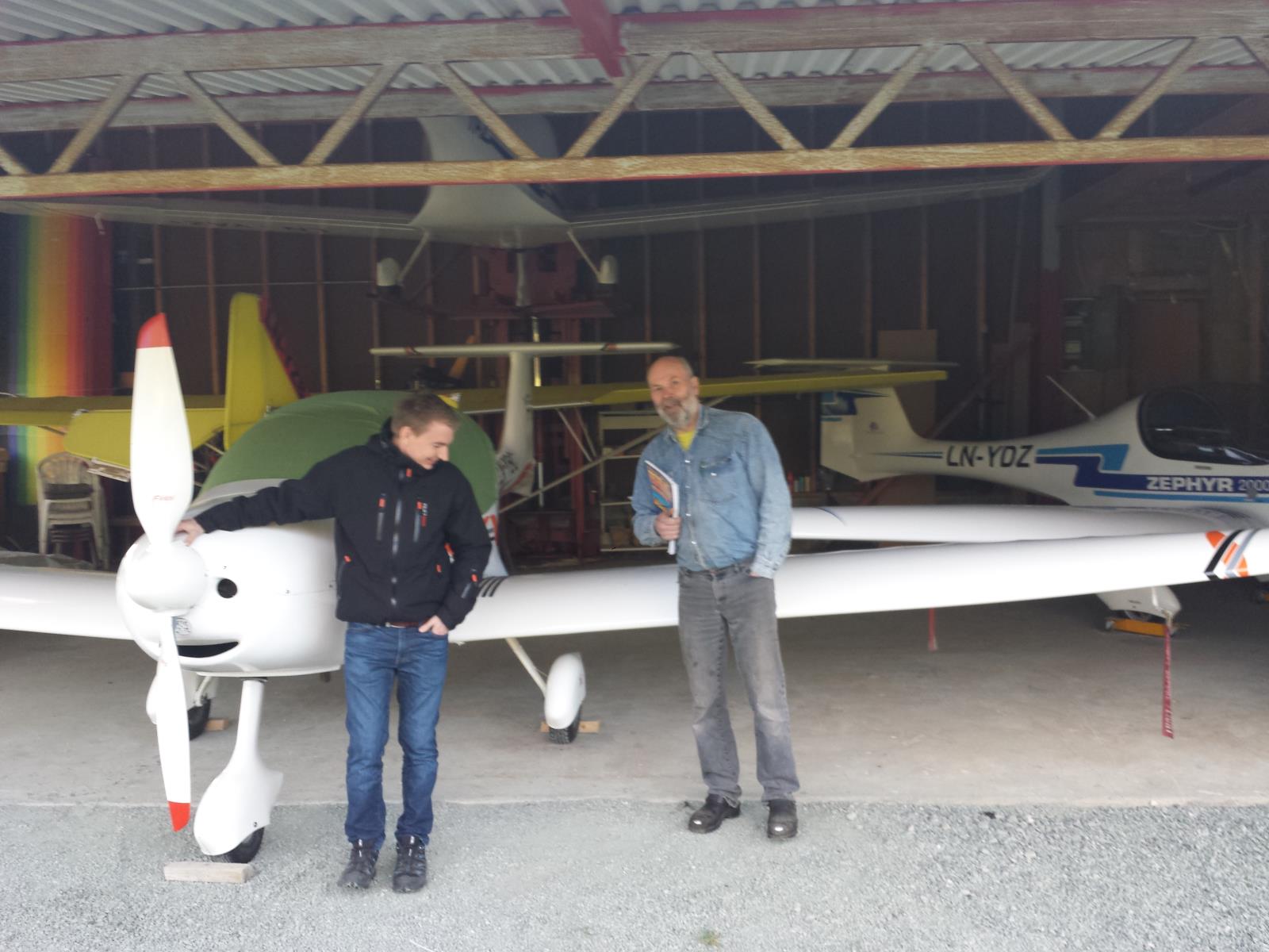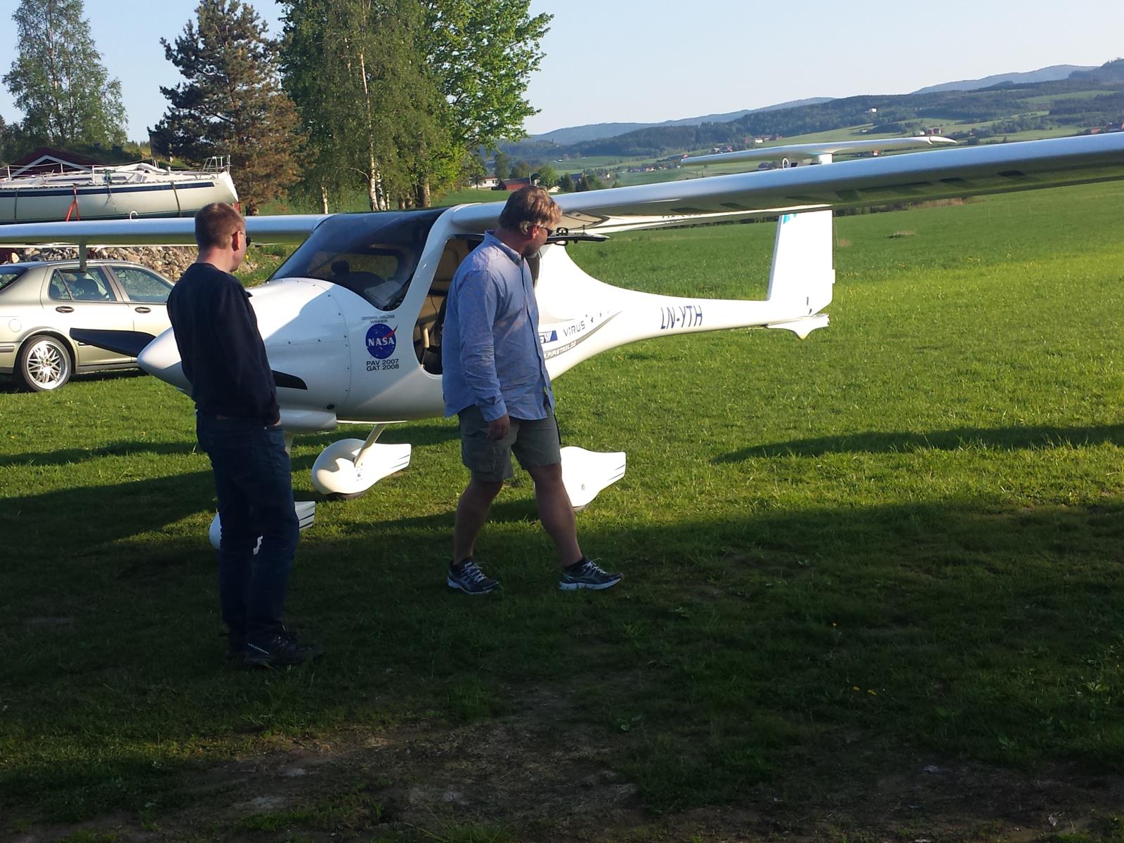 Per Arne Skjørholm i gang med besiktning av fly